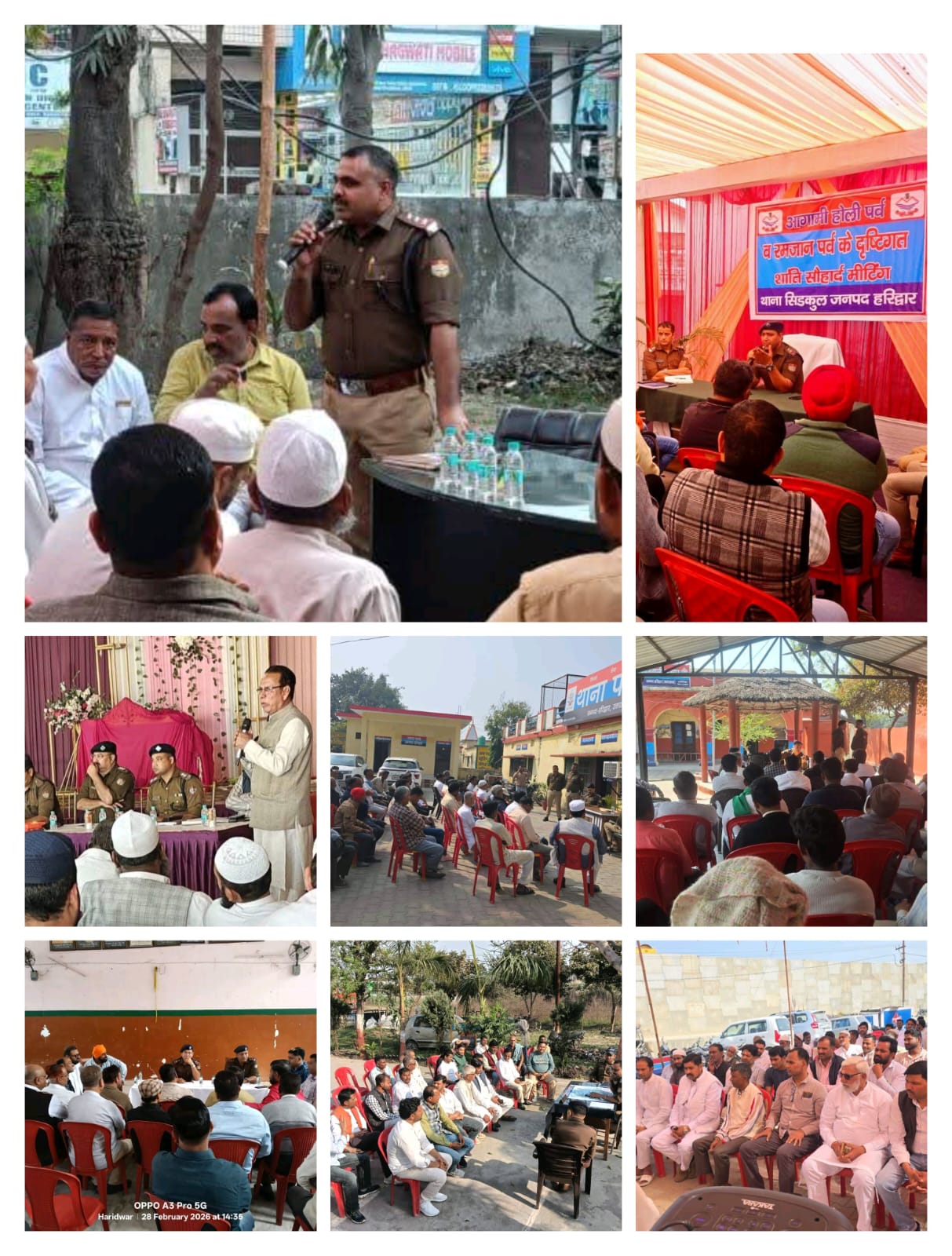संपादक (गुलफान अहमद)हरिद्वार।आगामी होली एवं रमजान पर्व को शांतिपूर्ण, सौहार्दपूर्ण और गरिमामय वातावरण में सम्पन्न कराने के उद्देश्य से वरिष्ठ पुलिस अधीक्षक नवनीत सिंह के निर्देशन में जनपद के समस्त प्रमुख थाना क्षेत्रों—कोतवाली रानीपुर, सिडकुल, भगवानपुर, ज्वालापुर, कनखल, श्यामपुर, लक्सर, बहादराबाद, खानपुर एवं पथरी—में व्यापक स्तर पर शांति गोष्ठियों का आयोजन किया गया।गोष्ठियों में सम्भ्रांत नागरिकों, सीएलजी सदस्यों, पार्षदों, व्यापार मंडल प्रतिनिधियों एवं अन्य जनप्रतिनिधियों की सहभागिता रही। पुलिस अधिकारियों ने सभी से त्योहारों को परंपरागत उल्लास, आपसी सम्मान और सामाजिक समरसता के साथ मनाने की अपील की। साथ ही यह भी स्पष्ट किया गया कि किसी भी प्रकार की अफवाह, भ्रामक या अपुष्ट सूचना को सोशल मीडिया पर प्रसारित करना कानूनन अपराध है, जिससे सामाजिक सौहार्द प्रभावित हो सकता है।बैठकों के दौरान स्थानीय स्तर पर समन्वय बनाए रखने, जुलूसों एवं धार्मिक कार्यक्रमों के दौरान निर्धारित दिशा-निर्देशों का पालन करने तथा आपसी संवाद को मजबूत रखने पर विशेष जोर दिया गया। पुलिस प्रशासन ने भरोसा दिलाया कि पर्वों के दौरान सुरक्षा के व्यापक इंतजाम किए जाएंगे और संवेदनशील क्षेत्रों में अतिरिक्त पुलिस बल तैनात रहेगा।प्रशासन द्वारा जारी दिशा-निर्देशों का पूर्ण पालन सुनिश्चित करने की अपील करते हुए स्पष्ट किया गया कि शांति व्यवस्था भंग करने, हुड़दंग करने या साम्प्रदायिक सौहार्द बिगाड़ने का प्रयास करने वालों के विरुद्ध सख्त वैधानिक कार्रवाई अमल में लाई जाएगी। पुलिस की यह सक्रिय और संवेदनशील पहल जनपद में विश्वास, भाईचारे और कानून व्यवस्था को सुदृढ़ करने की दिशा में एक महत्वपूर्ण कदम के रूप में देखी जा रही है।